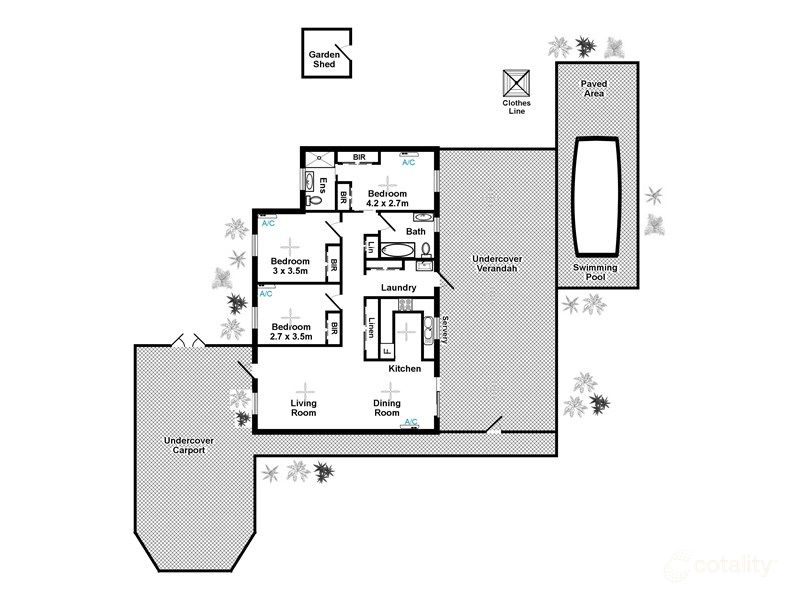 • Spacious lawns with garden shed